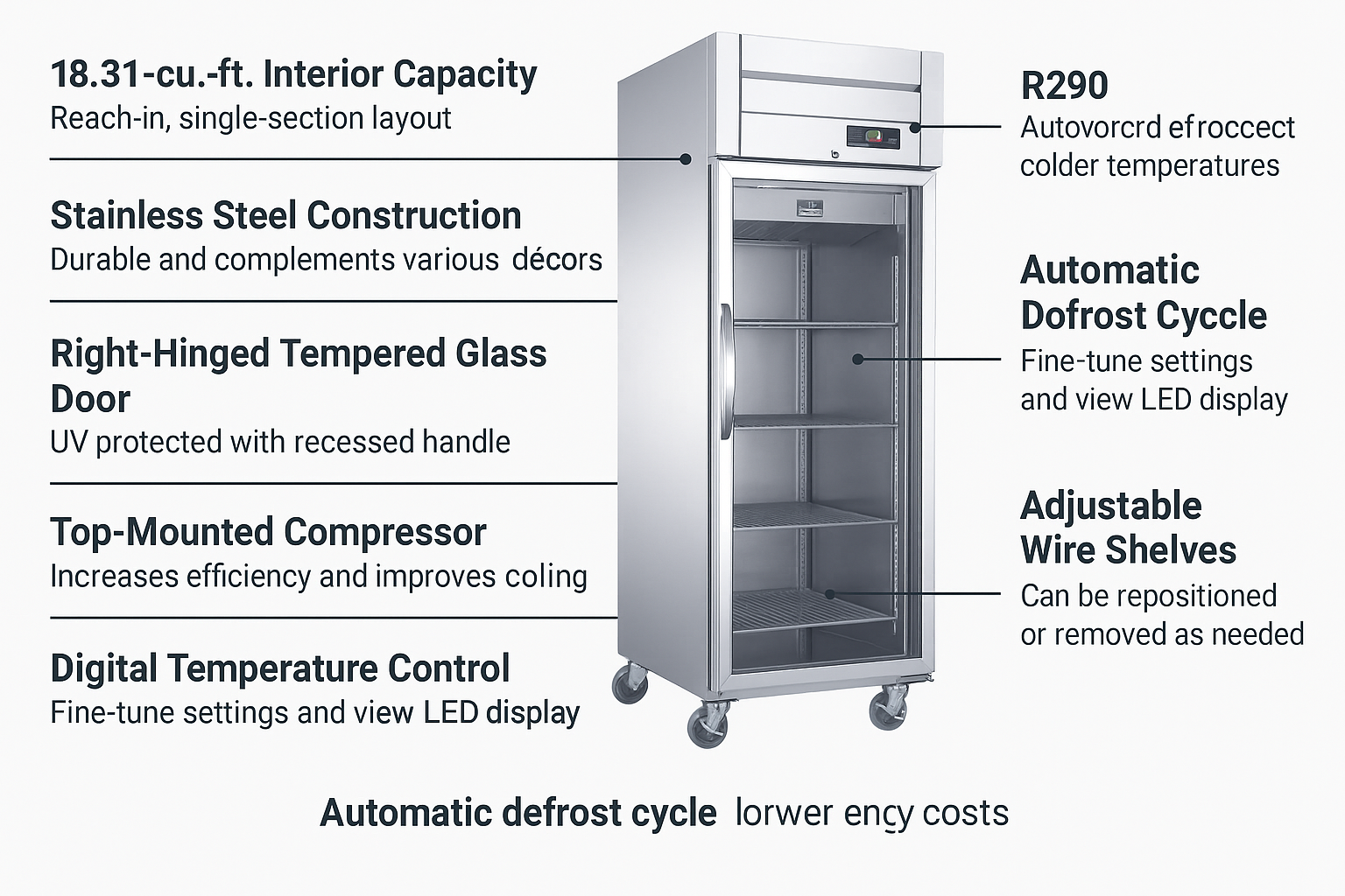 Absolutely love this 2-door reach-in fridge! Keeps a consistent temperature even during rush hours. The stainless-steel finish looks professional and is easy to clean.